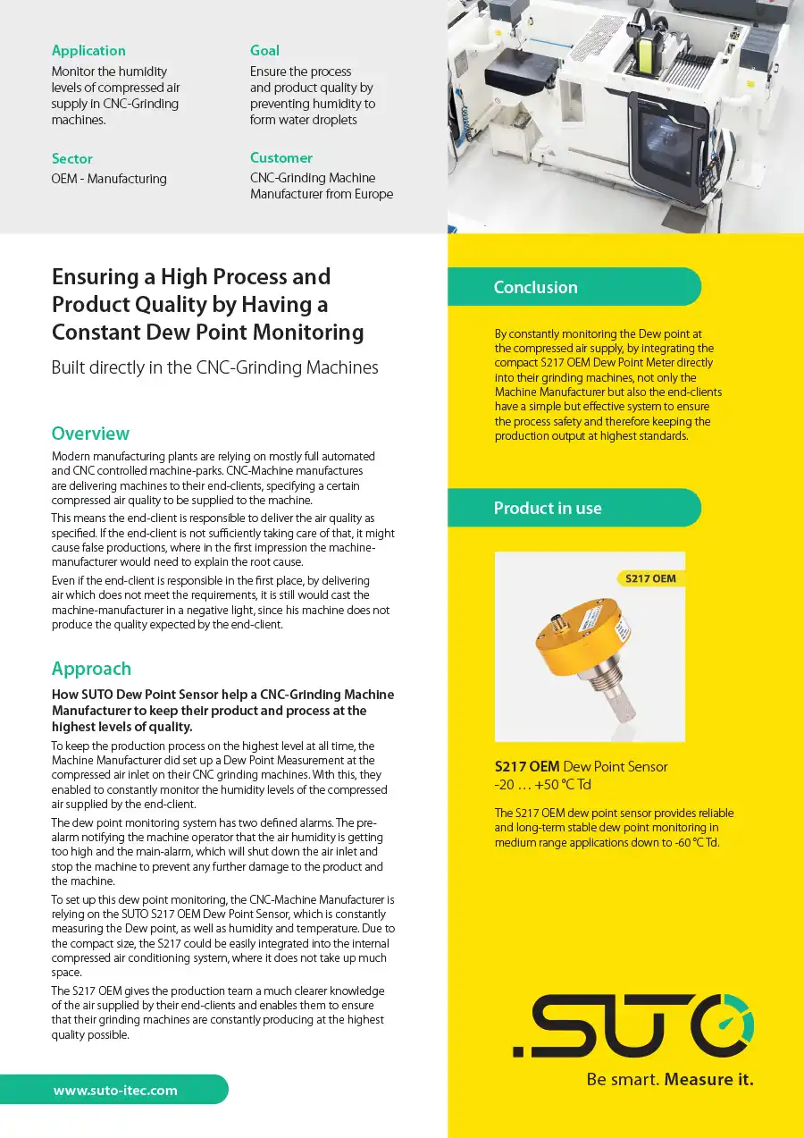 Monitor the humidity levels of compressed air supply in CNC-Grinding machines.